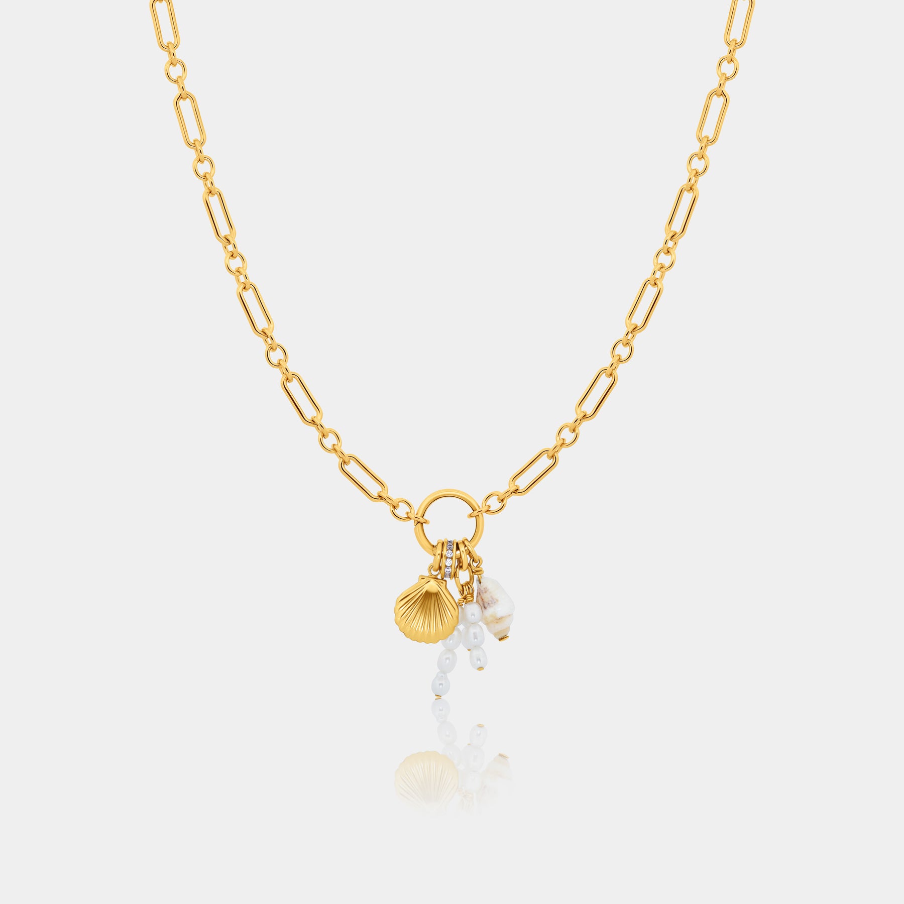 Our Pavé Charm Spacer Bead is designed to bring both sparkle and structure to your stack. Crafted in 14k Gold Plated 925 Sterling Silver and set with a row of shimmering Cubic Zirconia Stones, this spacer charm features a large hole that slides easily onto your favorite chains, creating space between charms while adding a touch of shine.