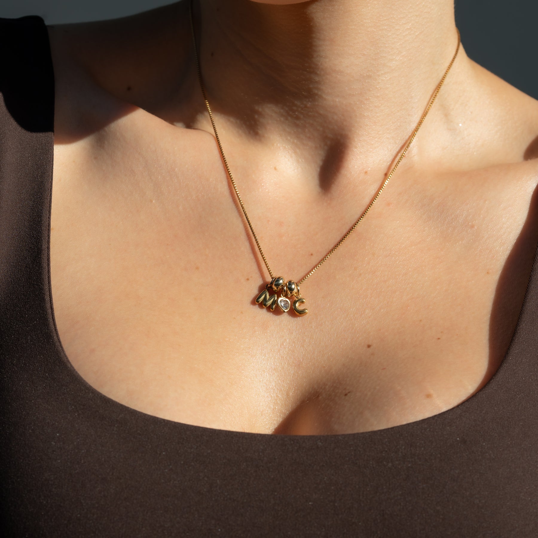 Our Mini Bubble Letter Charm is crafted in 18k gold-plated stainless steel with a playful, puffy silhouette. It’s the perfect way to add a personal touch—whether it’s your own initial, a loved one’s, or just a letter that means something to you. Designed to pair with any of our charm chains, it’s a fun little detail that makes your necklace feel uniquely yours.