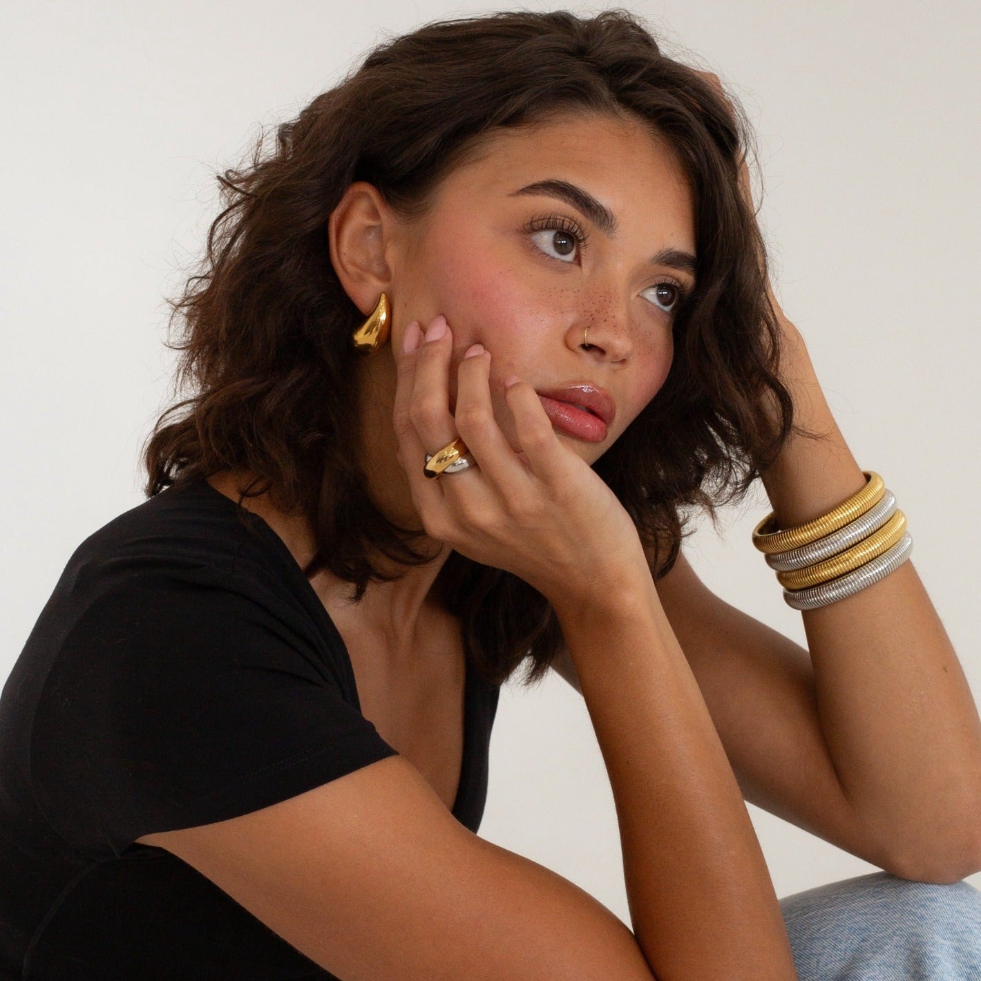 Inspired by the 80s, our Chunky Crossover Ring features a unique interlocked design that comes in two colorways - all gold or mixed metal bands. Crafted in durable 18k stainless steel to confidently handle everyday wear and tear. Wear as a standout on its own or as part of a ring stack.