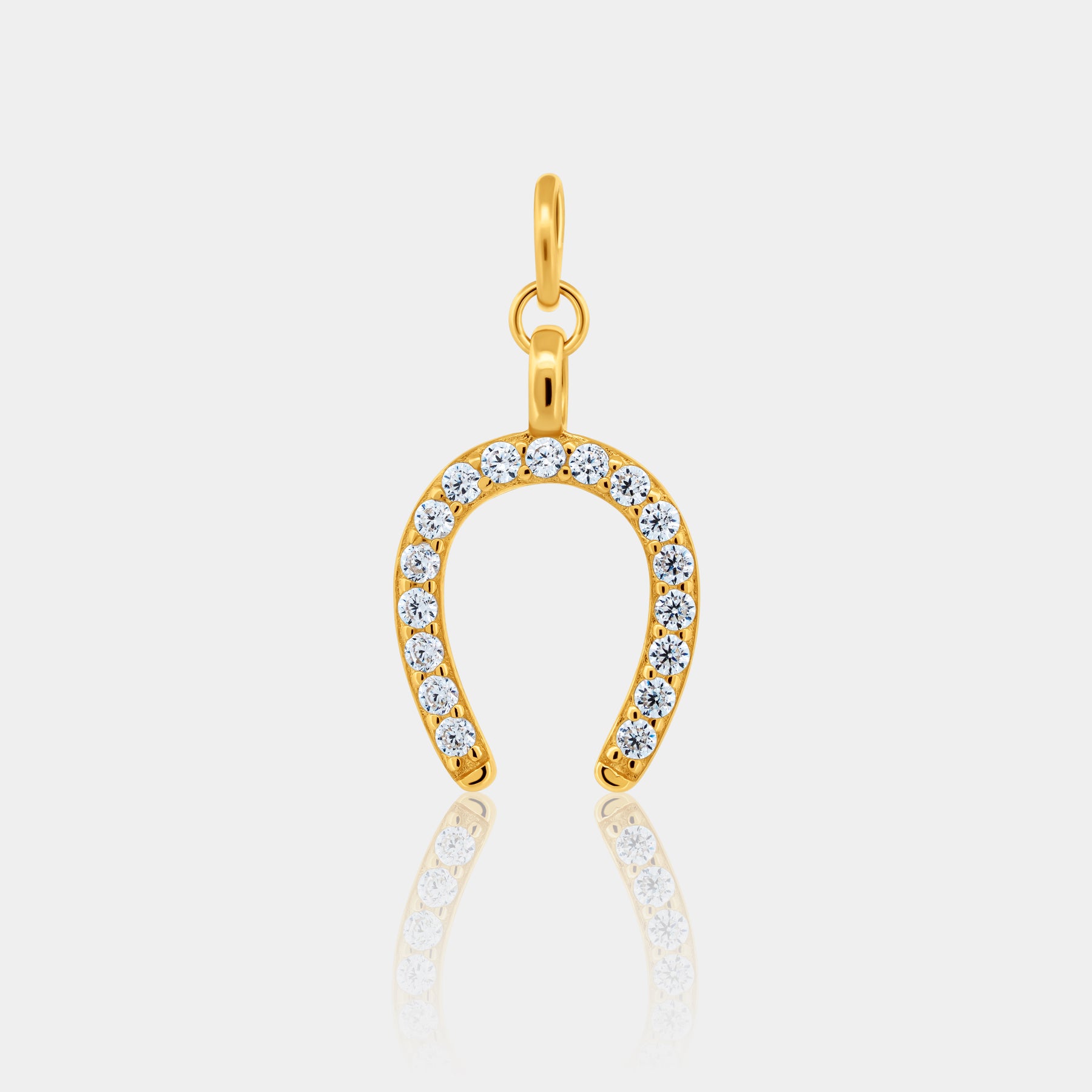 A timeless symbol of luck—our Pavé Horseshoe Charm is crafted in 14k Gold Plated 925 Sterling Silver and encrusted with micro pave cubic zirconias. Balanced between playful and luxe, it’s the perfect layering piece for any chain.