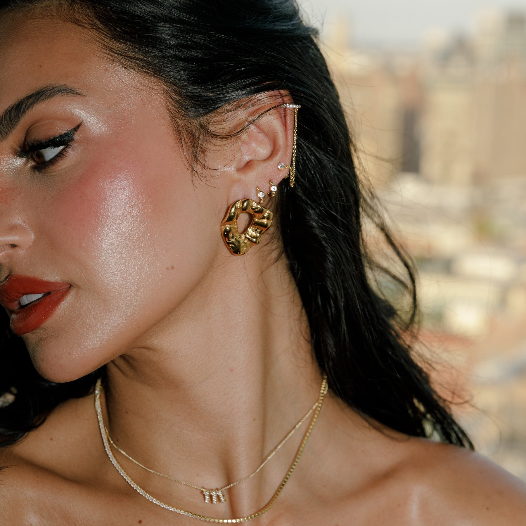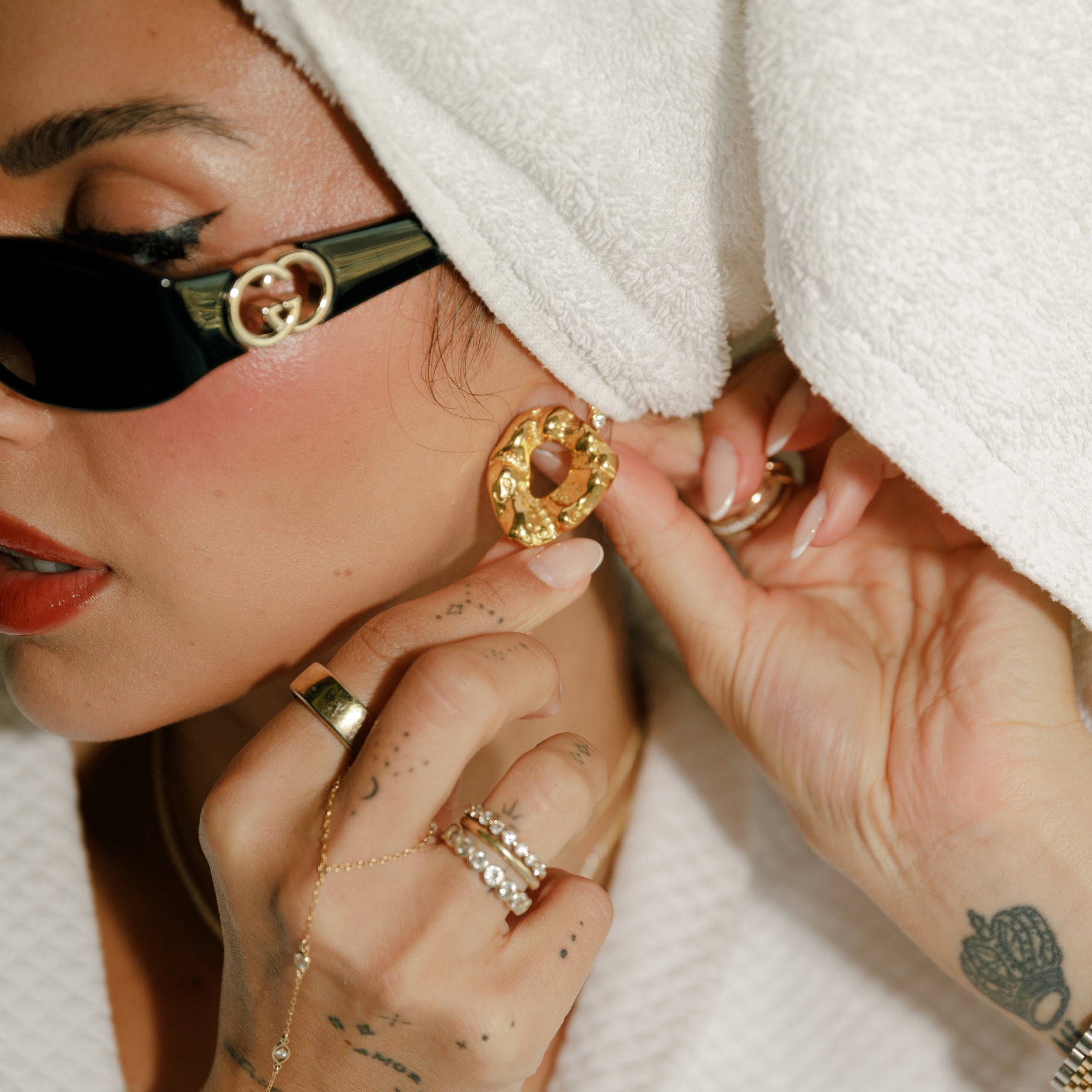 A vintage inspired statement piece for your capsule wardrobe. Its textured irregular shape makes them unique yet timeless. Perfect for everyday or a night out. Crafted in 18k stainless steel, these earrings are hypoallergenic and tarnish resistant.