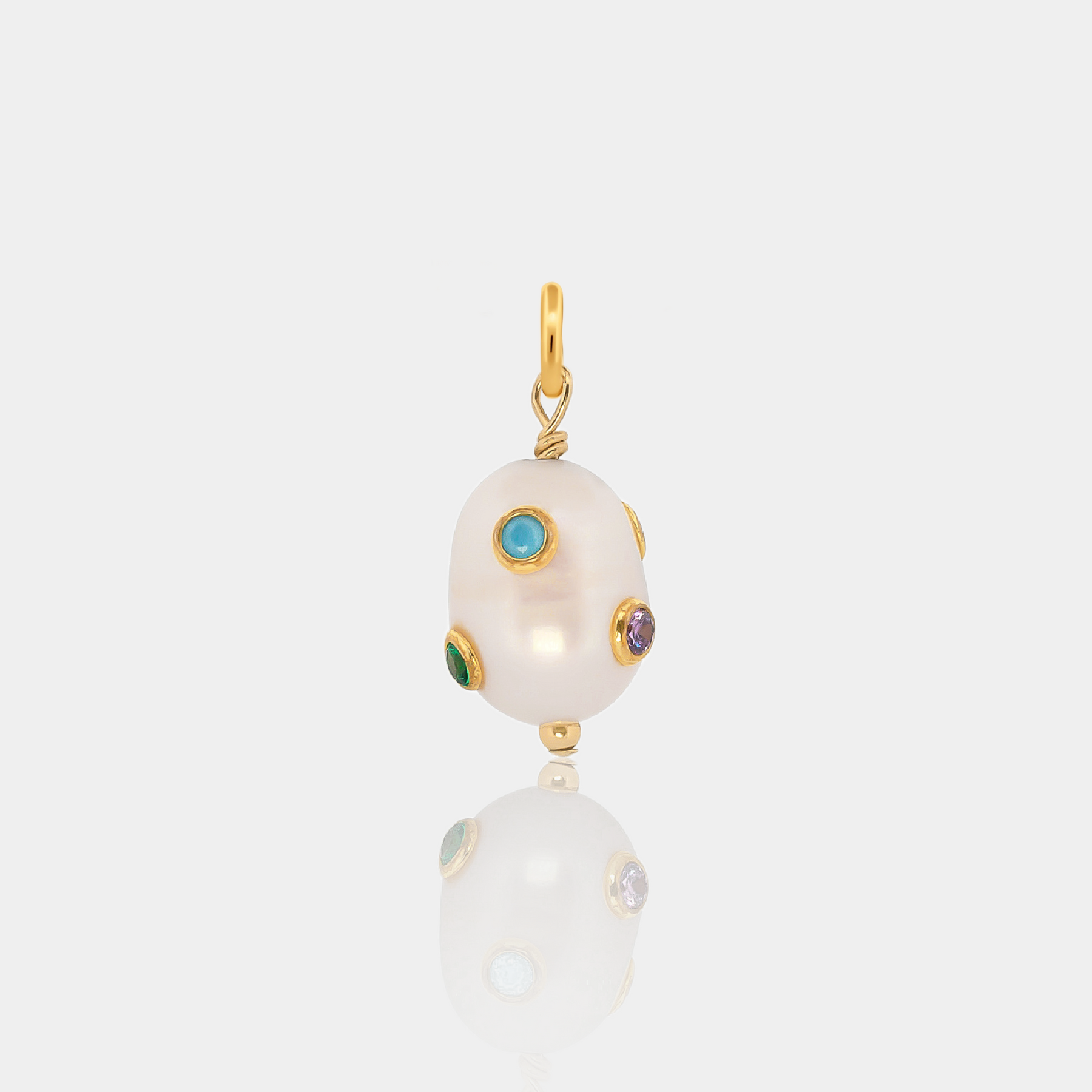 The Willow Gemstone Pearl Charm proves pearls don’t have to play it safe. A baroque freshwater pearl studded with vibrant gemstones, it brings just the right mix of polished and playful.