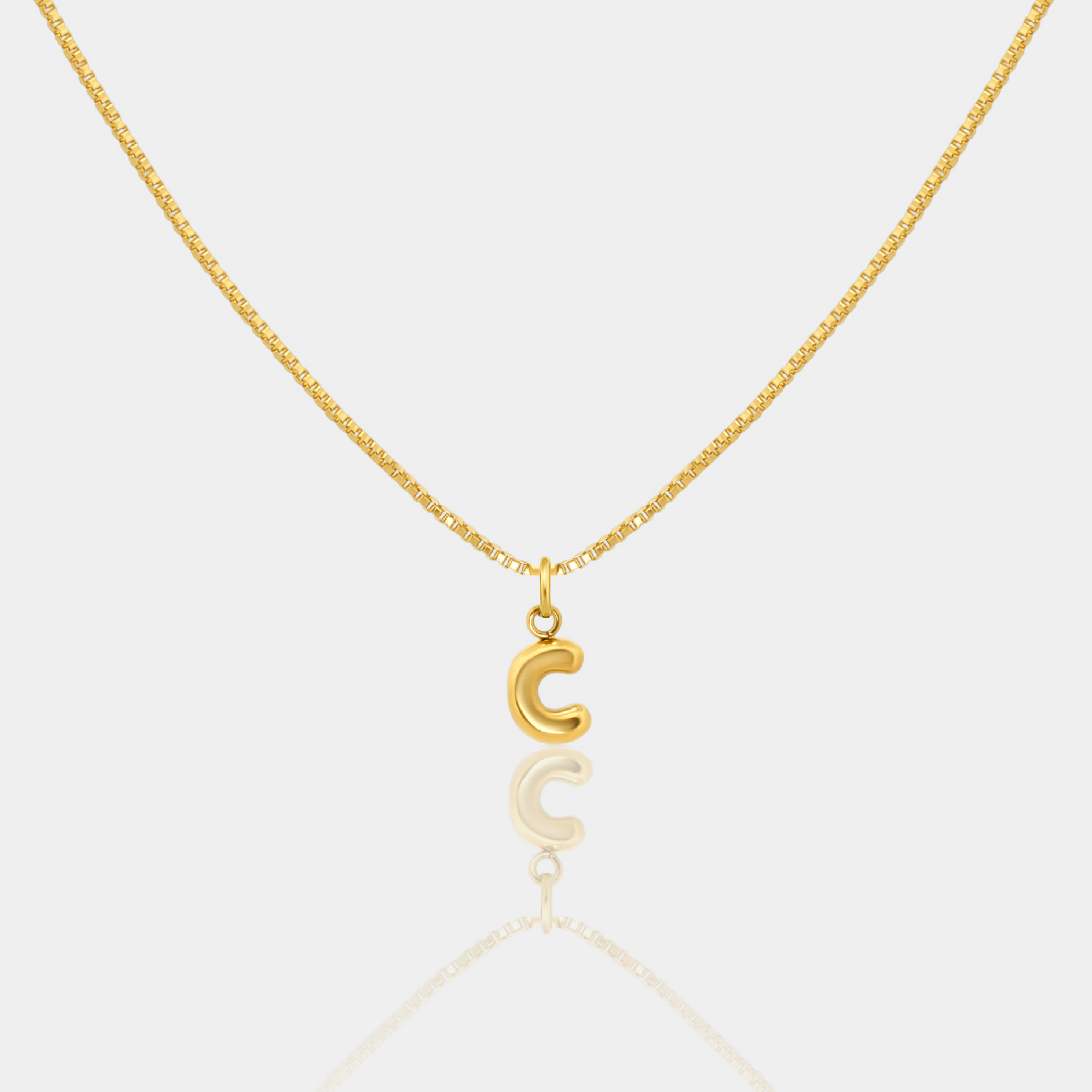 The Mini Bubble Initial Necklace brings a playful, personal touch to your everyday stack. The bubble-style letter pendant is crafted in gold-plated stainless steel for durability and shine, while the 14K gold-filled Venetian box chain adds a refined finish.